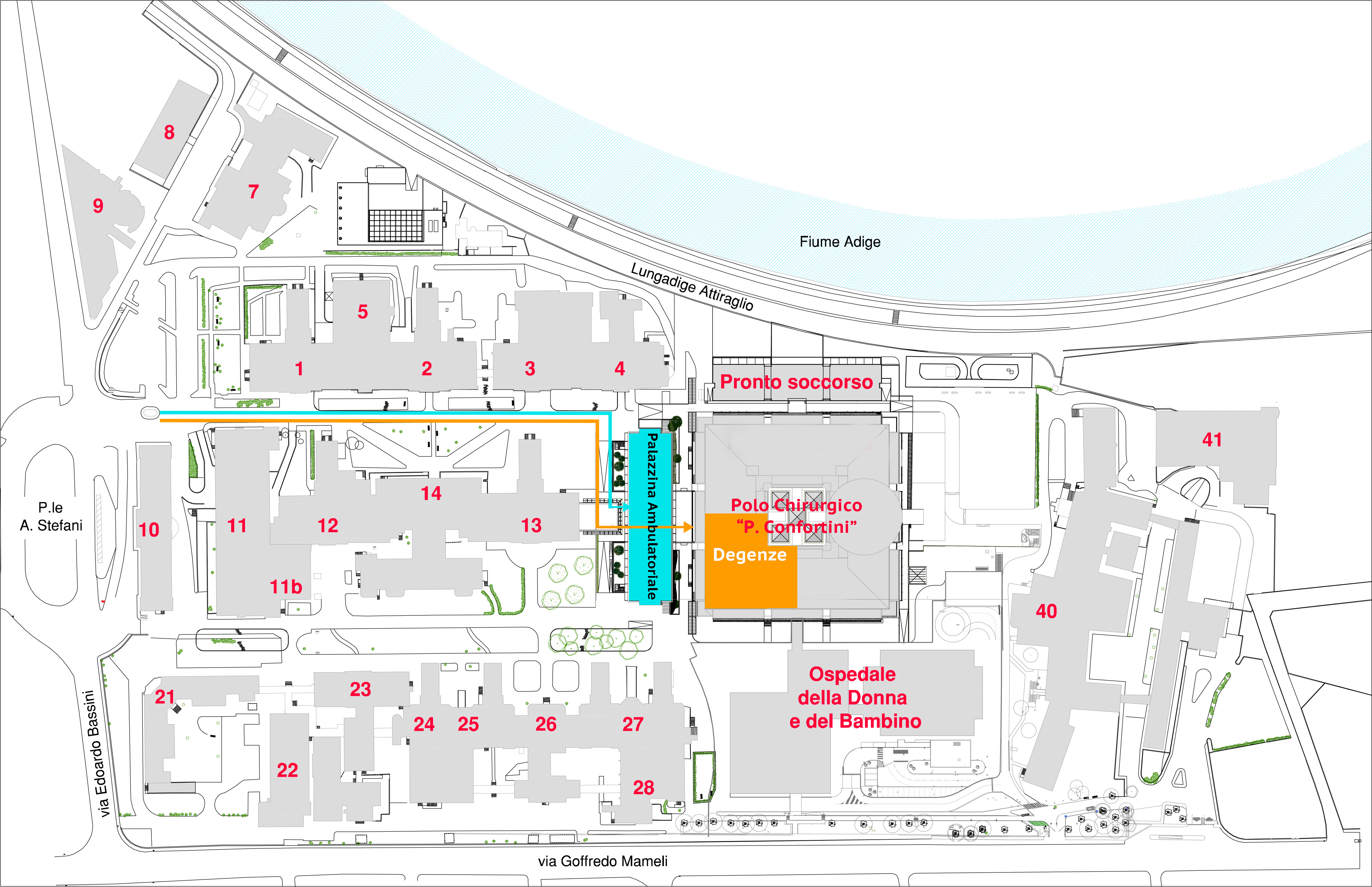 Ricovero Ordinario: Padiglione 15, (Polo Confortini), Piano 5, Scala Arancio